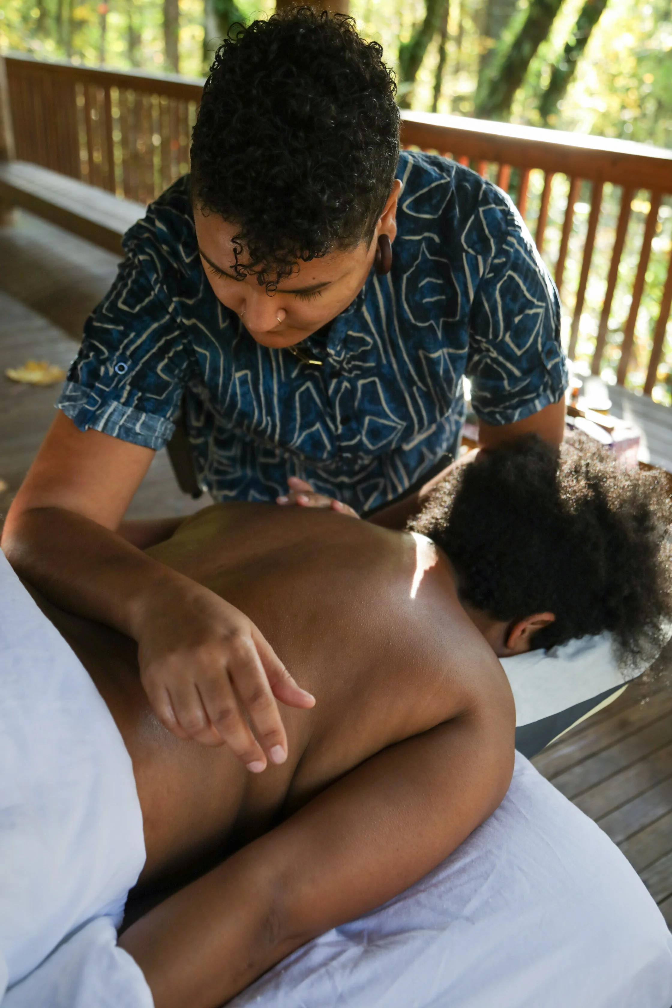 An intuitive blend of Deep tissue techniques including Swedish, Myofascial, Reflexology techniques, Polarity, Aromatherapy, Trigger point therapy, Somatic experiencing. This modality is practiced on a table draped between sheets and a blanket, dressed down to the clients comfort.The benefits are many including pain reduction, nervous system relaxation, working through chronic overuse injuries, recovering from accidents or trauma, reintegration of the whole body, and somatic connection.